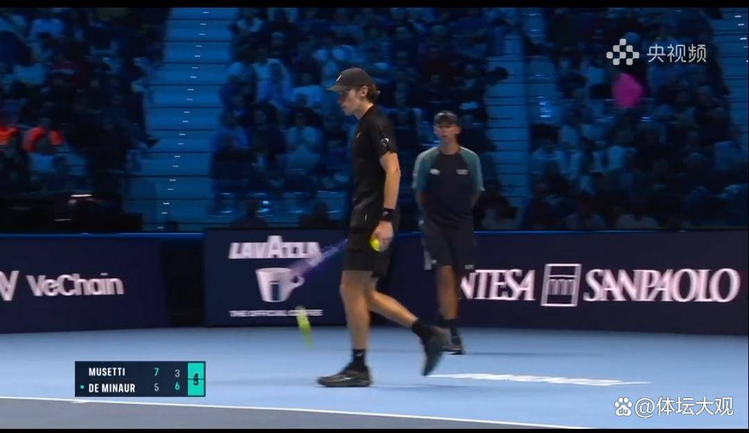 这场于都灵帕拉阿尔皮图体育馆进行的比赛,持续了2小时47分钟,让现场观众体验了过山车般的感受。 穆塞蒂最终以7-5、3-6、7-5的比分险胜德米纳尔,赢得了个人职业生涯首场年终总决赛的胜利。