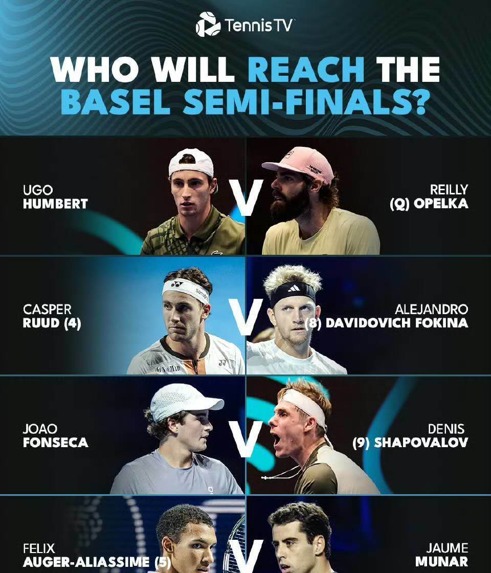 ATP巡回赛,ATP直播,ATP积分排名,ATP大师赛,2025网球赛程/聚焦ATP巡回赛2025全年度赛程、实时直播、积分排名、热门球员动态及预测分析。全面覆盖ATP1000、500、250赛事,是中文网球迷的不二之选。两站ATP室内赛激战正酣,北京时间今晚将陆续展开1/4决赛的争夺,那么不妨让我们对赛事进行一番前瞻: