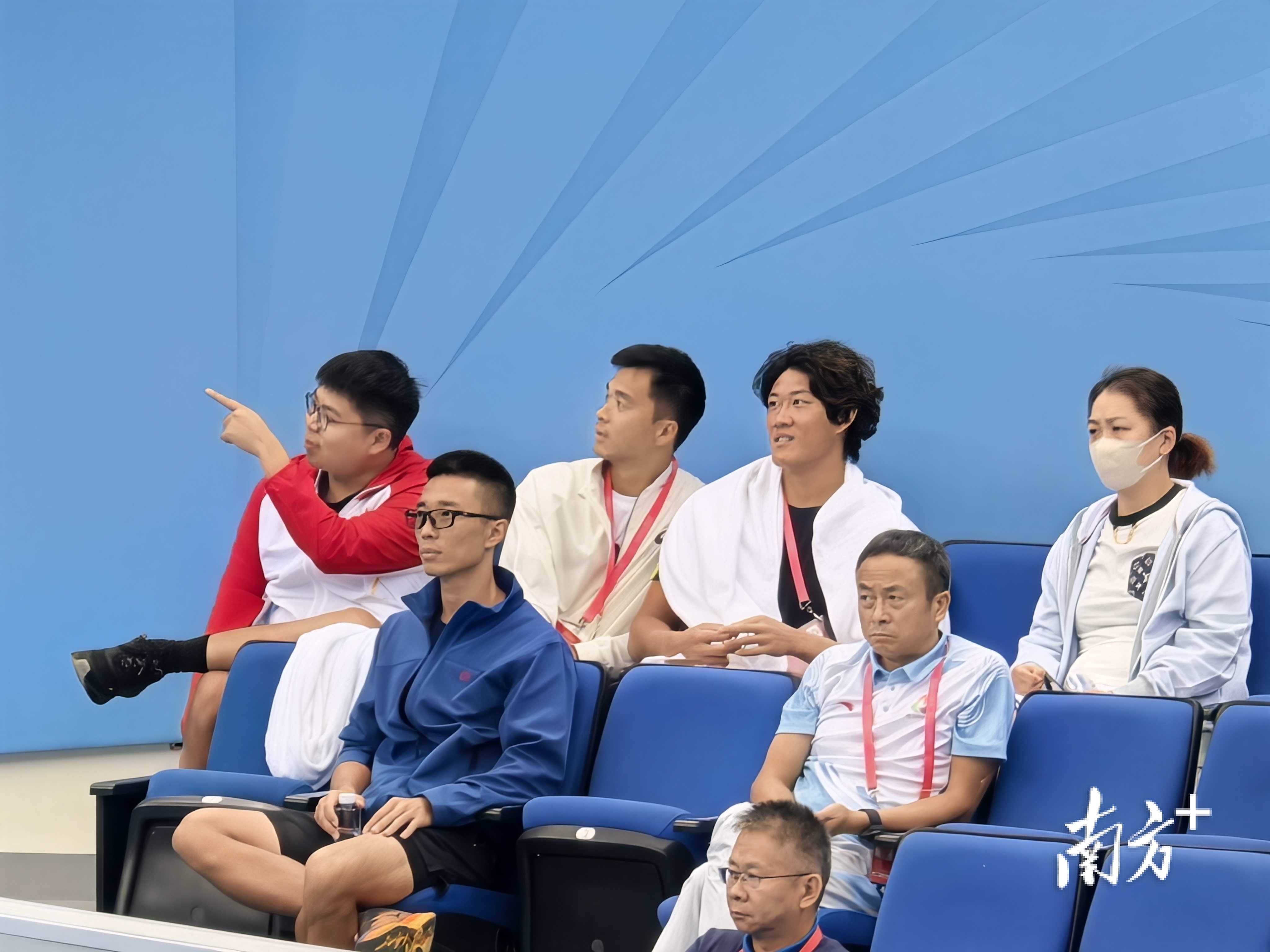 在这场男团比赛中,看台上也出现了大咖身影。国家体育总局网管中心主任白喜林和乒乓球奥运冠军丁宁出现在主席台。提前来横琴备战的张之臻也坐在球场观众席,关注这场优秀年轻人的对决。在另一场浙江女队的比赛中,吴易昺也在看台为队友加油。