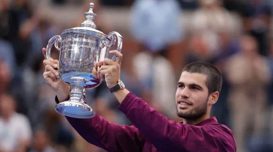 第二次美网夺冠并且登上世界排名第一。2025年美网决赛,阿尔卡拉斯四盘击败卫冕冠军辛纳,职业生涯第二次夺取美网冠军,并且登上世界排名第一。阿尔卡拉斯还以22岁3个月的年纪,成为公开赛年代夺取六个大满贯冠军第二年轻的选手,仅次于21岁1个月的博格。