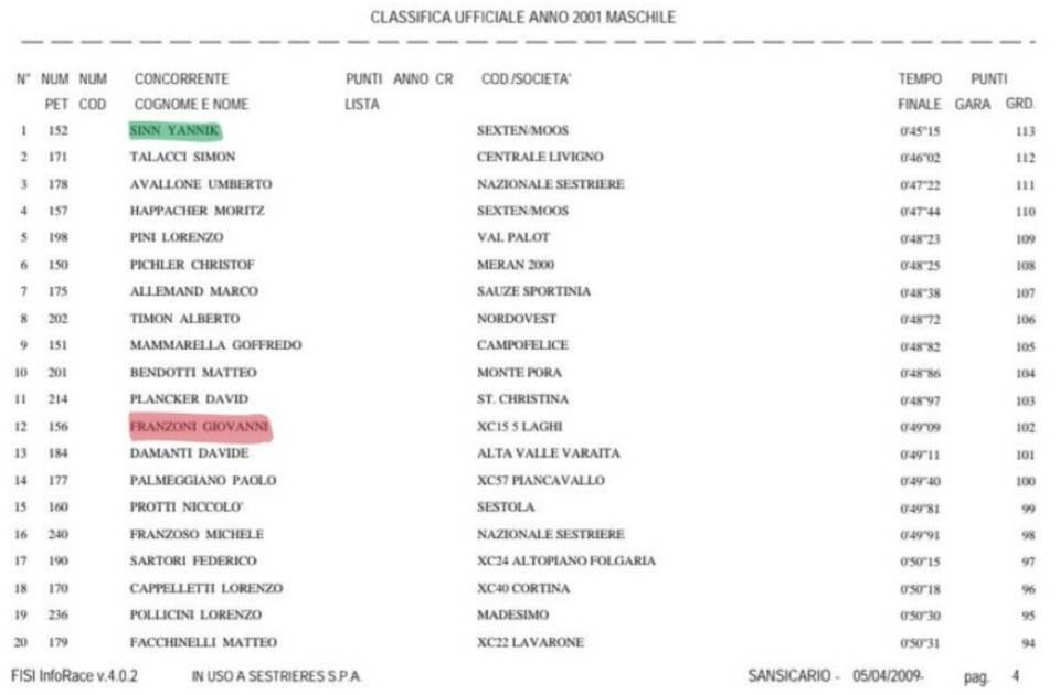 在那场2009年4月5日进行的比赛中,弗兰佐尼获得了第12名的成绩,而获得冠军的,正是目前在ATP排名世界第2位的意大利网球名将、4次大满贯冠军得主辛纳。