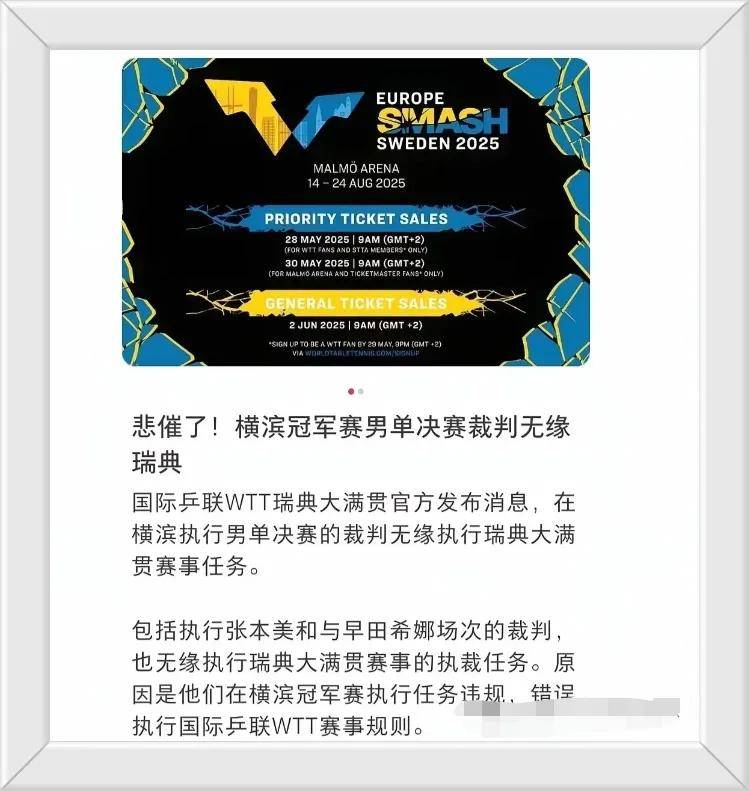 国际乒联官网更新的瑞典大满贯执法名单中,细心的网友发现了两个熟悉的名字消失了,正是执法男单决赛,和早田希娜对阵张本美和的两位主裁判。
