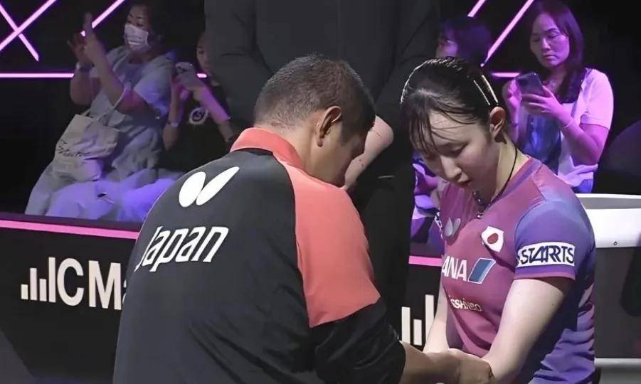 起初确实是赛事医生进场,但没过多久,她的主管教练冈雄介便接替了治疗工作,对着早田耳语了足足三分钟。