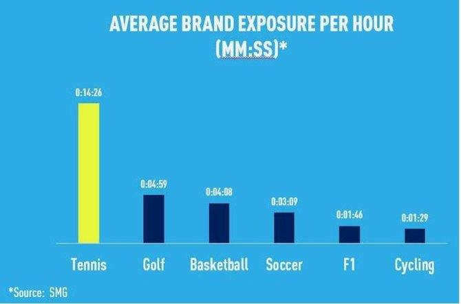 5.央视+主流新媒体高时长直播曝光,极高的营销性价比。网球赛事自身的比赛形式和特点,决定了赛场内各个机位的拍摄角度和镜头转动频率最小化,因而在电视转播或网络视频转播中,赞助品牌露出的时长可达到每小时14分钟,这一数字远高于足球、篮球等主流运动。因此,拥有大量权威媒体关注的顶级网球赛事,对于赞助商来说,无疑是实现品牌更长时间出镜的最佳选择。